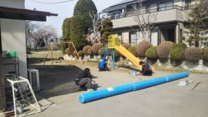 3月27日に、児童クラブの庭の芝張り作業を行いました🌴